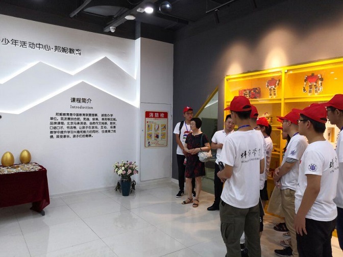 在座谈会结束后,实践小组在负责人的带领下参观了集团各个教学部门。王月英书记表示,邦妮教育集团是机械学院07级机械制造及其自动化优秀毕业生张士广学长创建的企业,大家要在学长的指导下多听、多学、多实践,争取在暑期这段时间里达到一定的自我提升,在实践的各个岗位上做出自己的贡献。