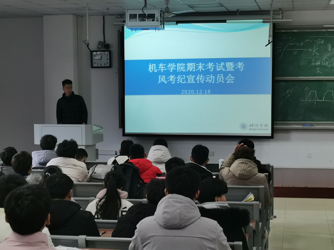 期末临近,复习迎考在即,为做好复习迎考动员,假期安全教育等工作,12月18日中午在G106室召开了2020级学生班会,辅导员任少平主持会议。