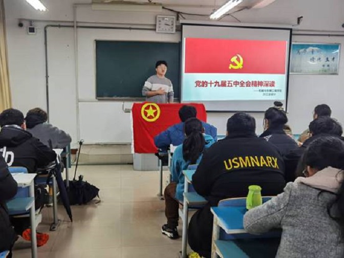 2020年11月开始,2138CC太阳集团各班级、团支部响应校团委的号召,举办了“党的十九届五中全会精神学习”主题团课。各团支部在团总支指导下,组织班级全体成员在寝室、班级中观看此次会议的视频,听取习近平总书记的讲话。