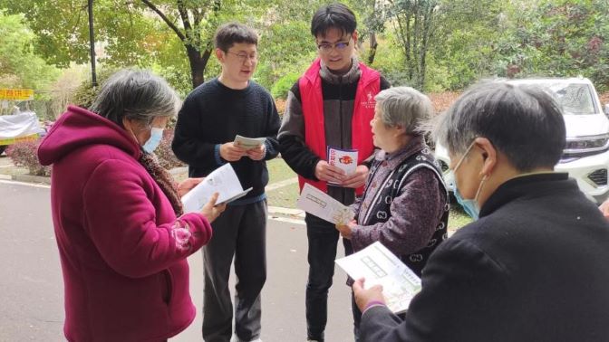 机械设计制造及其自动化专业学生党支部结合社区实际情况,分为5组,每组设1名组长,在物业人员协助下分区域、全覆盖开展消防宣传,主要围绕“电动车火灾、家庭式商铺火灾、住宅火灾、消防基础知识、消防安全常识二十条以及疏散逃生中的注意事项”等内容,为小区人员耐心细致讲解消防知识。