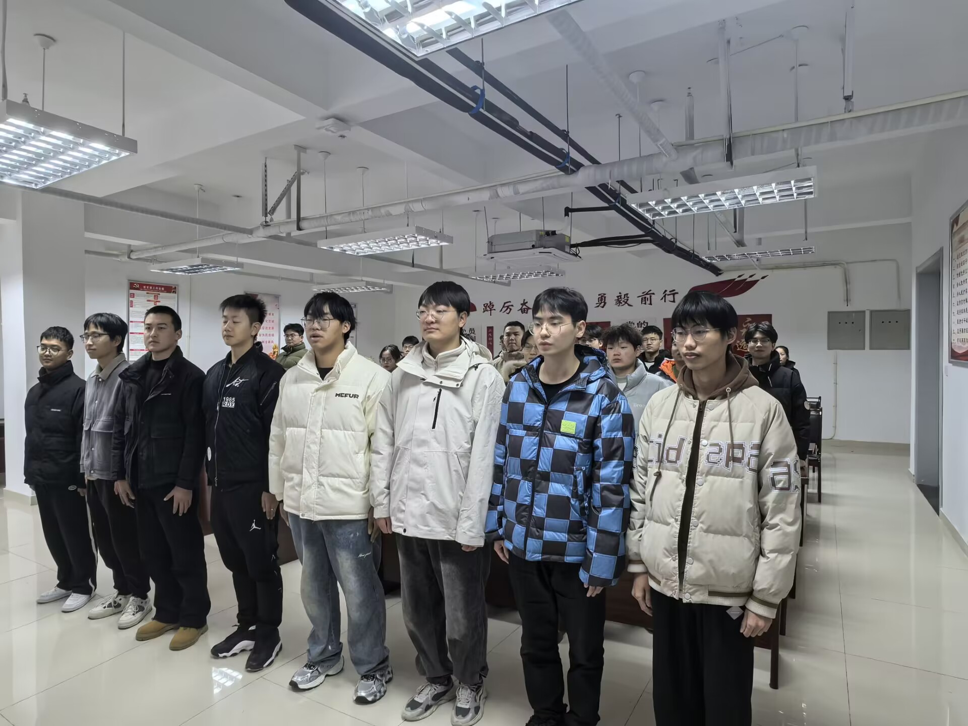 在学生党支部书记刘明英的带领下,预备党员们高举右手,庄严宣誓,铿锵有力的誓言在党员活动室内回荡,展现了预备党员们对党的忠诚和对共产主义事业的坚定信念。