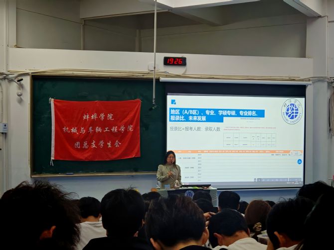 本次交流会,邀请了学院马海瑞博士与张雷博士分别与同学们分享考研经验。马海瑞博士结合自身学术经历,从考研目标、院校选择、专业课程复习规划等方面,为机制、材控、增材专业同学提供了实用建议。她强调,在考研复习过程中,要根据自身实际情况制定合理计划,注重基础知识的巩固与拓展。张雷博士为车辆和交运专业的同学们讲述了一个完整的考研历程并多次强调不要跟他人攀比,要自我较劲、自我加压。同时为同学们推荐了一些考研主播,介绍一些院校情况,告诉同学们要先选好院校,再确定要考的专业,这样才有更高的考中几率。最后几位考研成功的学长学姐分享了他们的经验。