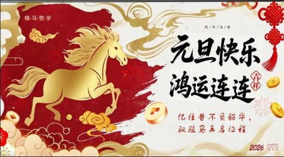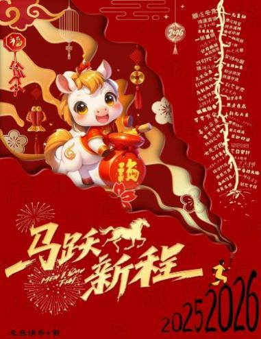 胡蕾同学的《元旦快乐鸿运连连》以骏马奔腾为主题,寓意“忆往昔不负韶华,骏马再启征程”,展现了辞旧迎新、奋发向前的昂扬姿态。