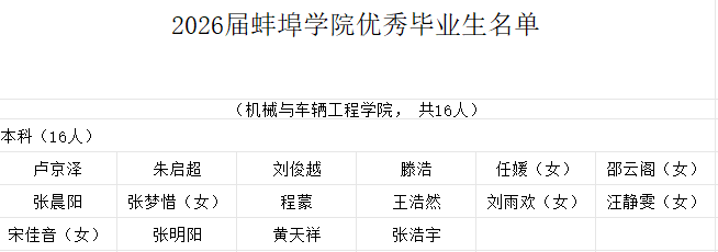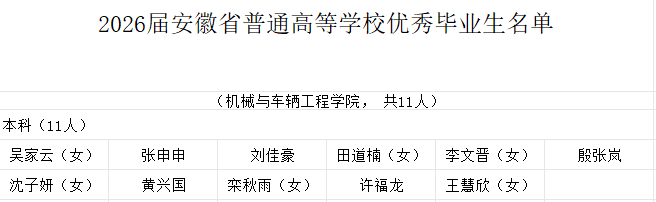 根据《关于组织开展2026届安徽省普通高等学校优秀毕业生暨2138cc太阳集团优秀毕业生评选推荐工作的通知》要求,经学生本人申请、班级评议、辅导员审查,学院评审委员会评审,党政联席会议审定,现将评选推荐结果进行公示,名单如下: