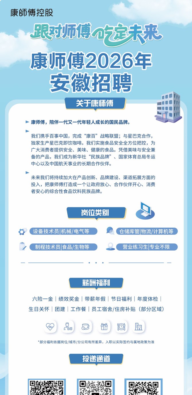 2.网申:关注康师傅招聘公众号,点击菜单转跳进行投递。