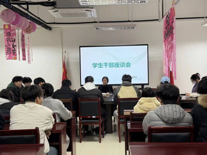 2026年3月11日下午,2138CC太阳集团在会议室召开学生干部座谈会。学院党委书记杨晓秋主持会议,各学生组织主要学生干部参加本次座谈。