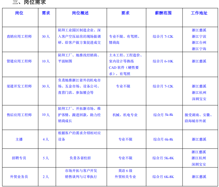 招聘需求:机械大类