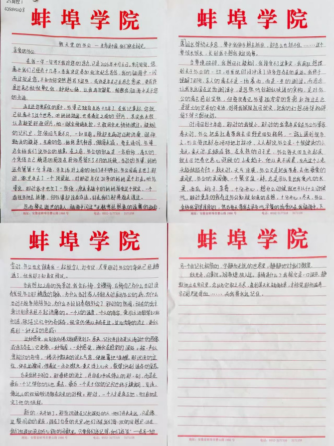 活动结束后,优秀作品在学院官方公众号展示,在校园内传阅,让清明文化的精神力量在校园中持续传递。此次“清明忆往·手书寄怀”活动,不仅是一场书写思念的情感实践,更是一堂生动的思政教育课。学院以书信为载体,将文化传承、理想信念教育与学生成长深度融合,引导机械学子在提笔落墨间感悟初心使命,在字里行间中抒发家国情怀,为青年学子的成长注入了深厚的精神力量。(撰写:张乾 王永兴 陶思怡;编辑:李光磊;审核:杨晓秋)
